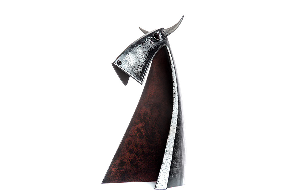 Býk s červenou náprsenkou (výška 70 cm, ocel), Bull with red breast (height 70 cm, steel)